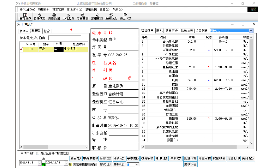 通用查询、检验结果查询、患者结果查询、检验明细档案、工作量统计、异常查询